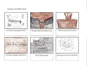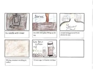 A storyboard is developed to show a client pictorially what may be shown on screen. These usually work well when we do product videos, especially when the finished video will need to be approved by a third party. Third parties to a product video might be QVC or the Home Shopping Network.